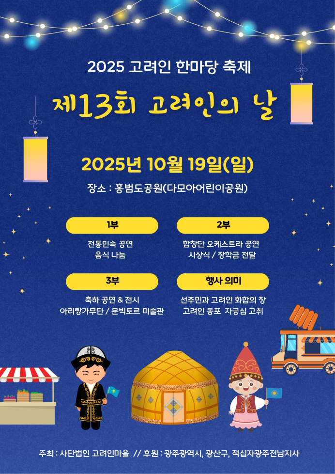 ¡®¿ª»ç¸¶À» 1¹øÁö¡¯ ±¤ÁÖ °í·ÁÀθ¶À»Àº ¿À´Â 10¿ù 19ÀÏ(ÀÏ) ¸¶À» Áß¾Ó¿¡ À§Ä¡ÇÑ È«¹üµµ°ø¿ø¿¡¼ ¿¸®´Â ¡®Á¦13ȸ °í·ÁÀÎÀÇ ³¯¡¯ ±â³äÇà»ç¿¡¼ Ưº°ÇÑ ¹«´ë¸¦ ¼±º¸ÀÎ´Ù°í ¹àÇû´Ù.