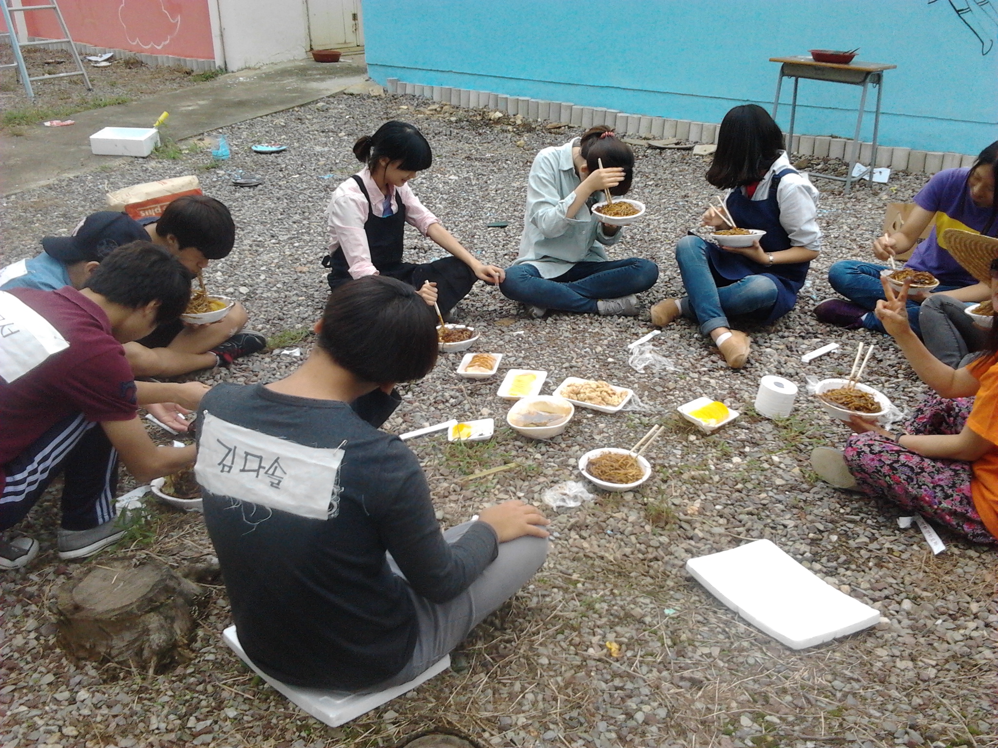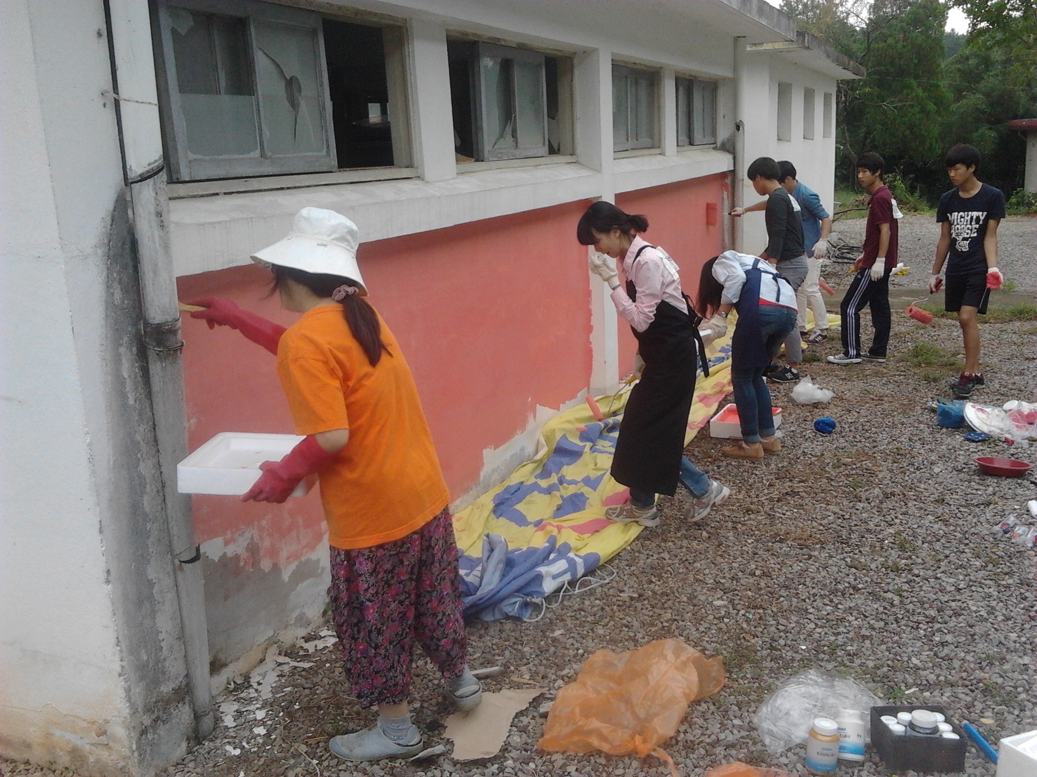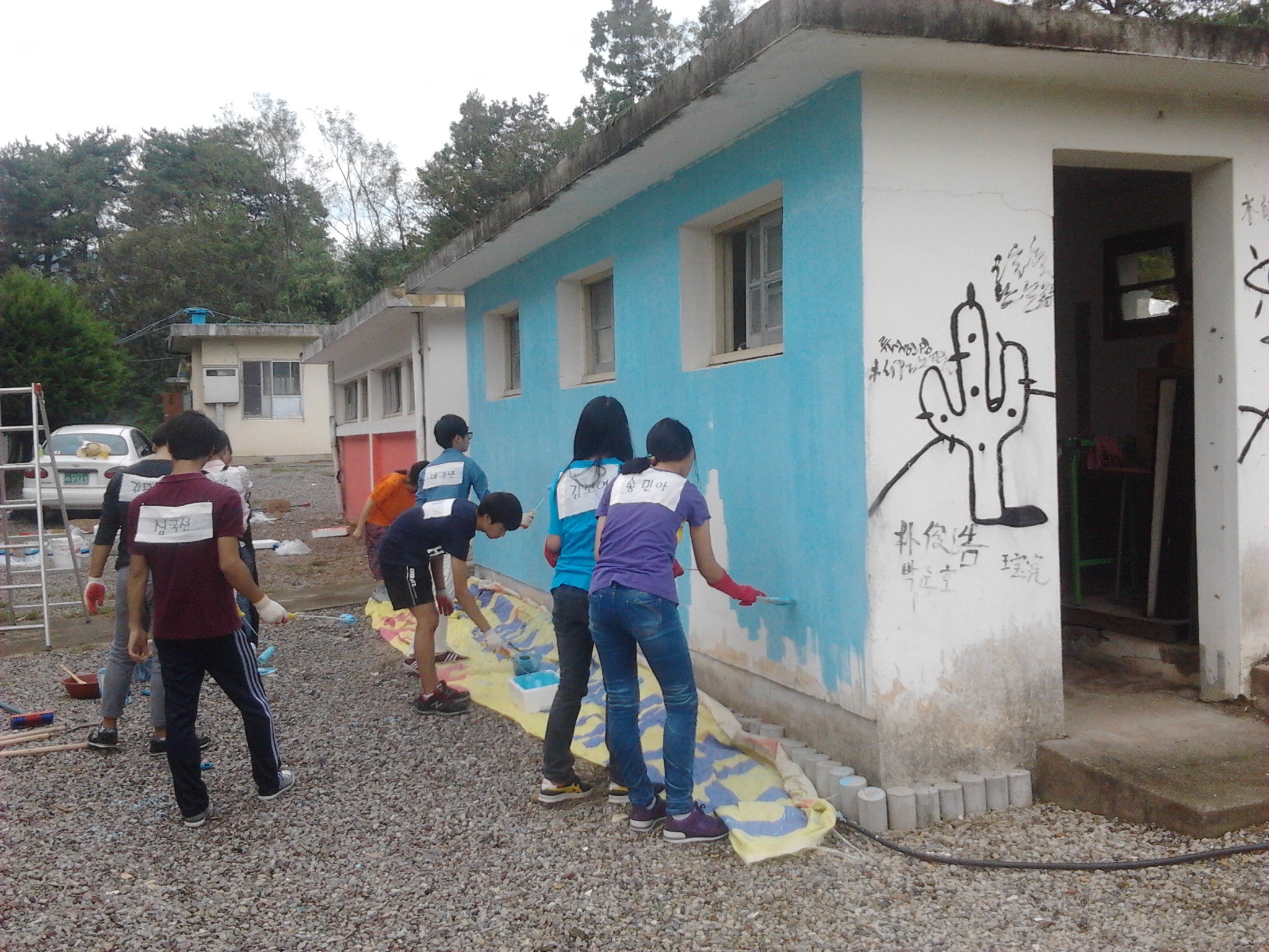 ºû°íÀ»°í ¹Ì¼úµ¿¾Æ¸® Á¶¼ö¿ÁÁöµµ±³»ç¿Í 1Çгâ Á¶ÀºÇØ, ±è¼¼¿¬, ¼±ÔÁ¤, ½É±¹¼±,±è´Ù¼Ö, ¹Ú°æ¹Î, Á¤ÁöÇýÇлý°ú 2Çг⠼۹ξÆ, ±èº¸¿µ Çлýµé·Î ±¸¼ºµÈ ÀÚ¿øºÀ»ç´ÜÀº Áö³ 15ÀÏ Àç·¡½Ä ÈÀå½Çº®¿¡ ¹Ø±×¸²À» ±×¸®°í »öÄ¥À» ¸¶¹«¸®ÇÏ¿© ¾Æ¸§´Ù¿î º®È¸¦ ¿Ï¼ºÇß´Ù.