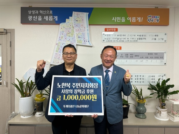 ±¤»ê±¸ ¿ù°î2µ¿ ÁÖ¹ÎÀÚġȸ ³ëÇѺ¹ ȸÀå(¿À¸¥ÂÊ)ÀÌ Á¦33ȸ ±¤»ê±¸¹Î»ó ¼ö»óÀÚ·Î ¼±Á¤µÆ´Ù./¿ù°î2µ¿ Á¦°ø